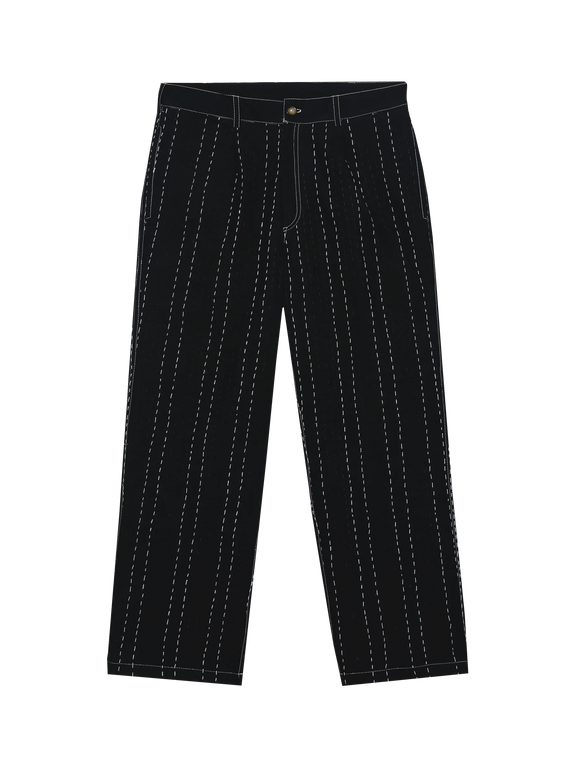 Plain-woven cotton straight-fit pleated trousers with Kantha embroidery hand-stitched throughout.